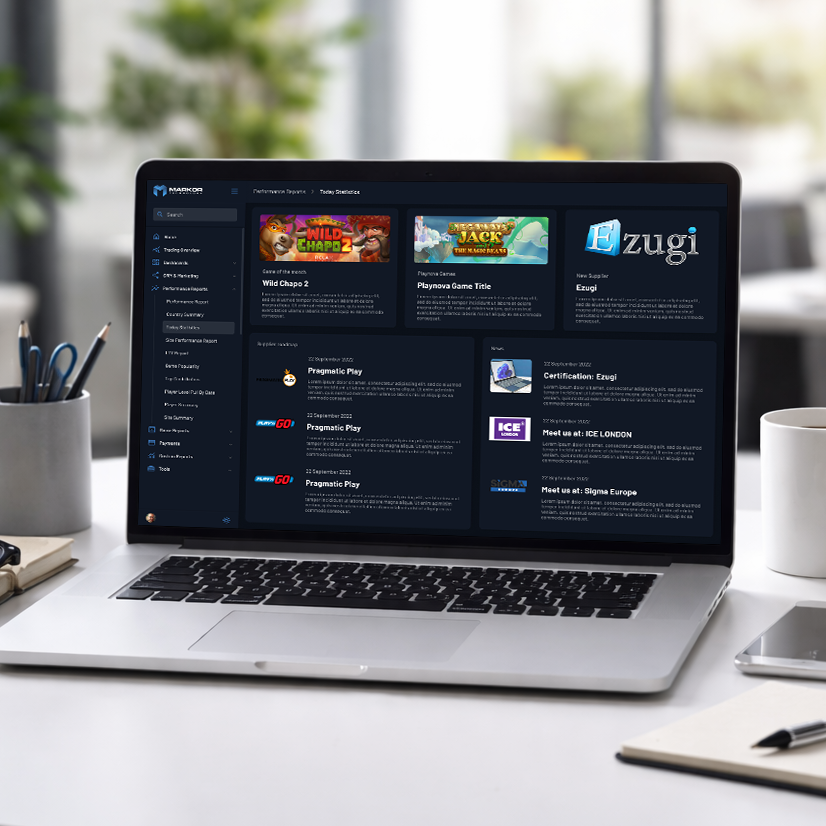 Internal management portal for configuring and operating online casino platforms, enabling clients to manage games, content, and platform services.